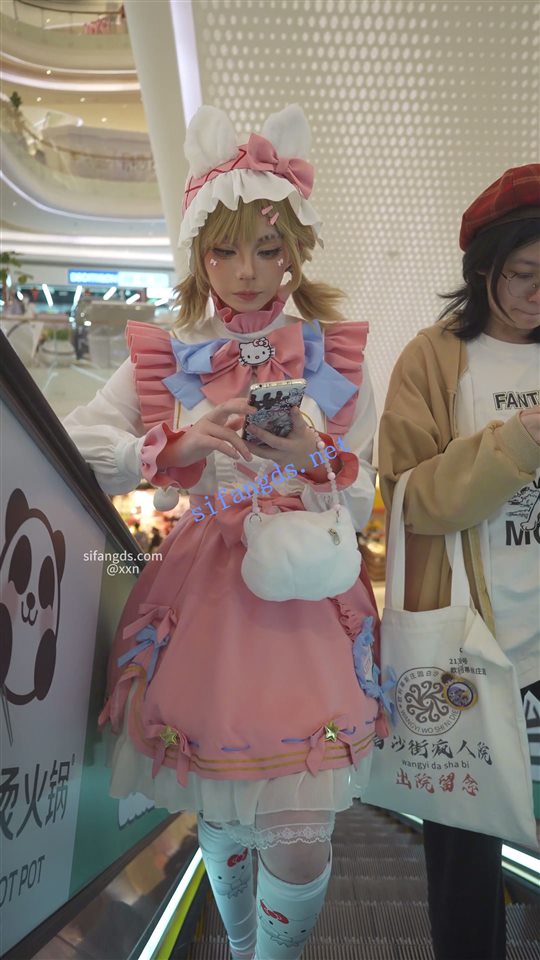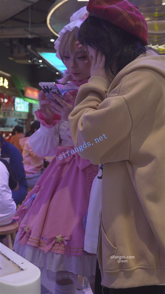•  第五人格cos萌妹逛商场,在奶茶店拍抖音,被抄底蕾丝边黄内,桌下视角也能看到内裤。。