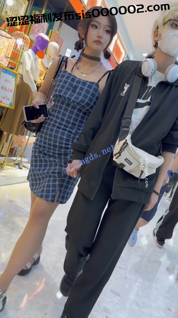 【KFC】精神小妹和黄毛男友逛街·露背吊带裙白色内内前后CD【1V】【369M】